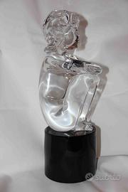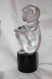 Scultura in vetro di Murano Scultura in vetro Calcedonio di Loredano Rosin, Murano Venezia L'opera è firmata dal Maestro Loredano Rosin morto nel 1991 L'opera è stata prodotta nel laboratorio di famiglia a Murano nel 1981 Il vetro calcedonio è una tecnica nata a Murano nel XV secolo L'opera è in Calcedonio neutro, base nera, l'altezza totale è circa 40cm e il peso è circa 12kg La scultura è perfetta, priva di segni