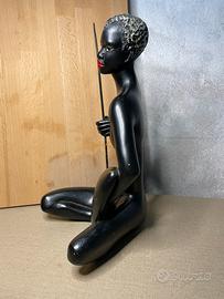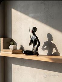 Vendo splendida scultura vintage in ceramica nera raffigurante una figura tribale stilizzata, risalente agli anni '50/'60. Il pezzo è un classico esempio di design Mid-Century Modern, perfetto per arredamenti minimalisti, bohémien o collezioni di arte esotica.