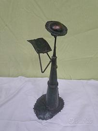 suggestiva scultura antropomorfa in metallo (probabilmente ferro o rame con patina brunita), eccellente esempio di arte brutale/modernista.