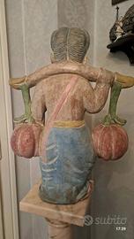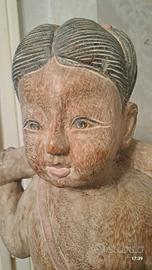 SPLENDIDA SCULTURA LEGNO XL PESANTE E IN OTTIMO STATO CONSERVATIVO RAFFIGURANTE BUDDHA BAMBINO CHE LAVORA DA ESPOSIZIONE E COLLEZIONE
