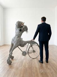 ottenuta unendo e saldando oggetti industriali di recupero come una bicicletta,