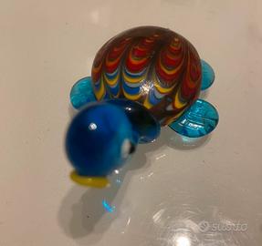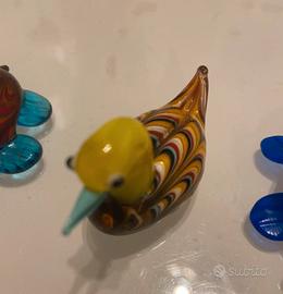 Sculture tre animali in vetro soffiato di Murano riproducenti un'anatra e due tartarughe Dimensioni 5 cm. circa cad.