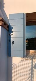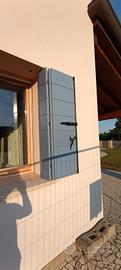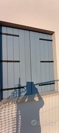 Scuri in legno multistrato marino Okoumè verniciati RAL 5014 coprente all' acqua eseguiti alla padovana. Misure h1,40Xl1,20mt , spessore 4cm. Buono stato.