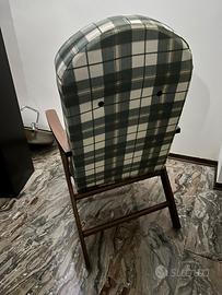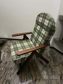 Vendo splendida poltrona in legno con braccioli, tenuta perfettamente, dotata di seduta reclinabile per il massimo comfort. Il design classico con rivestimento in tessuto scozzese verde la rende perfetta per un ambiente rustico o vintage. Struttura solida e seduta comoda, ideale per relax in casa o in veranda.