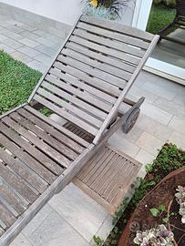 2 sdraio in legno con ruote per spostamento schienale regolabile e portaoggetti scorrevole . sempre tenuto al riparo durante l'inverno . 100 € la coppia