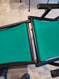 Vendo sdraio in legno massiccio con allungo per piedi agganciabile. Telo in cotone resistente verde bosco. Ottime condizioni.