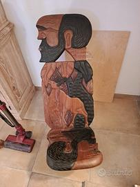 Sedia/scultura etnica artigianale, realizzata interamente in legno massello con struttura smontabile a incastro.