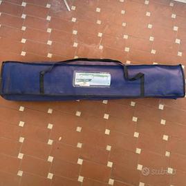 Lettino sdraio non reclinabile da esterno, giardino, balcone, campeggio, spiaggia, in tela blu e struttura in alluminio nuovo mai usato, con custodia (solo la la custodia presenta scolorimento da esposizione a raggi Uv e risulta un po’ impolverata perché è stato qualche mese all’esterno). Si vedano le parti in alluminio ancora avvolte da pellicola protettiva. Montaggio rapidissimo e semplice. Dimensioni lettino: Lunghezza 188 cm, larghezza 63 cm, altezza 42 cm. Peso 6 kg. Dimensioni custodia chiusa: lunghezza 93.5 cm, larghezza 17 cm, profondità 13 cm. DATE LE DIMENSIONI NON DISPONIBILE SPEDIZIONE CON TUTTOSUBITO. CONTATTARMI PER ALTERNATIVE. Possibile anche ritiro a mano a Firenze Rifredi.
