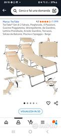 Vendo coppia di sdraio utilizzate due volte , sono pieghevoli leggere . Presentano due manici laterali , copri cole, cuscino , e taschino porta oggetti .