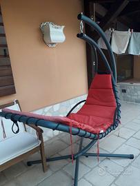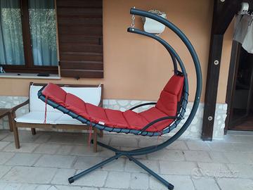 Vendesi causa trasloco una sdraio sospesa con superficie d'appoggio ergonomica e struttura in acciaio robusta e stabile su quattro gambe.