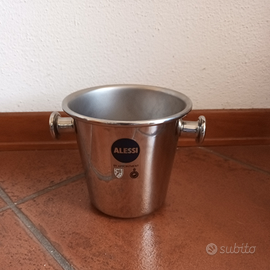 2 secchielli per ghiaccio (uno grande e uno piccolo) + shaker in acciaio marca Alessi designer Ettore Sottsass.