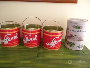 Vendo in blocco quattro secchielli portacaramelle di latta marchiati Caffarel.