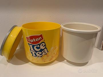 Raro secchiello portaghiaccio pubblicitario Lipton Ice Tea, vintage Anni'90. Usato ma in ottime condizioni. Misura 23x19cm. Di non facile reperibilità. Articolo da collezione.