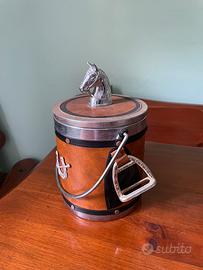 Secchiello per ghiaccio vintage, cavallo equestre anni '70 con staffe e ferro di cavallo.