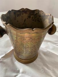 Secchiello per il ghiaccio vintage in ottone, manifattura artigianale, utilizzato per mantenere al fresco bottiglie di vino o spumante, in Ottone con decorazioni floreali incise.compreso di pinza porta ghiaccio.