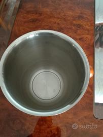 Secchiello porta ghiaccio per Champagne o Spumante, Marca Freddy, in acciaio inox 18/10 Made in Itali, misure, altezza 22cm, diametro superiore 20cm, diametro inferiore 12cm. Nuovo mai usato