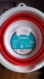 Secchiello in silicone e plastica Galileo, richiudibile fino a 5 cm. Dimensione: 5 litri, diametro 25cm, altezza 20cm da aperto