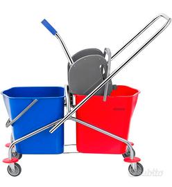 Vendo carrello in metallo con 2 secchi capienti e strozzatore , inoltre regalo mocio lavapavimenti