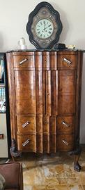Secretaire produzione prima/metà XX, radica di ulivo autentica, con venature e nodi tipici dell'olivo. Buono stato estetico generale, qualche segno d'uso sul piano e sulle superfici esterne.