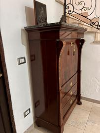 Antico secrétaire in piuma di mogano e marmo.