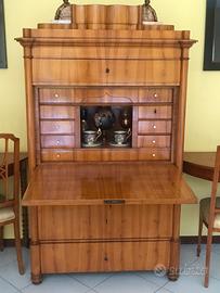 Segretaire originale Biedermeier in betulla con ribaltina, tre cassetti grandi, 2 cassetti lunghi e stretti, 6 cassettini laterali ed un cassetto superiore. Mobile restaurato Da vedere e ritiro in luogo