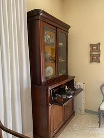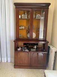 Secretaire antico inglese XIX Vittoriano in mogano massello. Vetrina superiore e corpo inferiore con ribalta scrittoio. Misure L. 1,20 H. 2,22 P 0,46/0,30