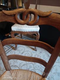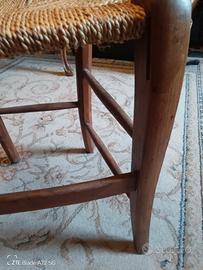 Set di quattro sedie risalenti al XIX secolo. Impagliatura recentemente restaurata. Una sedia ha l'impagliatura da risiatemare. L'intelaiatura delle quattro sedie è in ottimo stato.