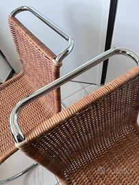 La Sedia 304 viene alla luce con un design a sbalzo, caratterizzata da una struttura in acciaio e da uno schienale in canna naturale intrecciata
