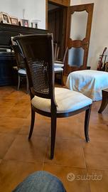 Sedia Luigi XVI in faggio. Schienale sporgente sagomato con ricciolo ed intrecciato in paglia di Vienna, sedile imbottito e gambe morbide.