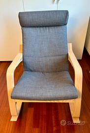 Sedia a dondolo modello Poäng, impelliciato rovere, skiftebo grigio scuro. Utilizzata solo qualche mese per allattamento, come nuova. Marca Ikea