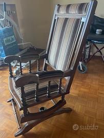 Sedia a dondolo fine ‘800 inglese vittoriana in mogano, in ottime condizioni. Misure altezza 1,06, seduta 60 cm