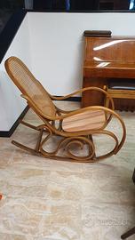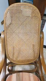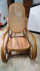 Sedia a dondolo della trisnonna in legno, ben conservata, con schienale in paglia di Vienna. Il sedile è stato modificato molti anni fa ed è in legno, non in paglia di Vienna. L'articolo non viene spedito. Da ritirarsi in loco previ accordi .