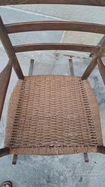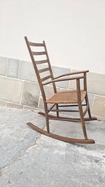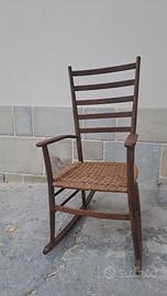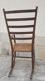 Sedia a dondolo antica in legno di noce e seduta in corda. Altezza cm 107 Larghezza cm 55 Profondità cm 80 Si trova presso la provincia di Salerno