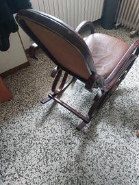 sedia a dondolo buone condizioni generali. la seduta non è rovinata, sono le cuciture fatte in questo modo. colore marrone