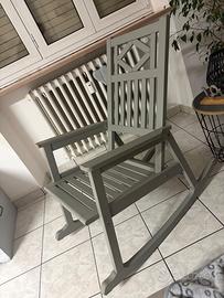 Sedia a dondolo Ikea, colore grigio, purtroppo ha una parte del poggia braccio un po rovinato come si vede in foto per il resto è in ottimo stato