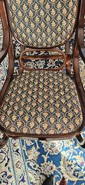 Propongo in vendita una sedia a dondolo rivestita in tessuto, in condizioni eccellenti.