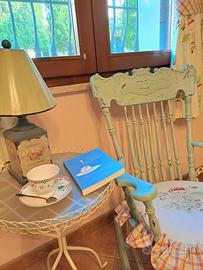bellissima sedia a dondolo restaurata e riverniciata color verde chiaro. Ritiro a domicilio