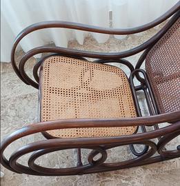Sedia a dondolo dei primi del 900 , originale Thonet con marchio Thonet Wien (in foto) sotto la seduta (con sedile e schienale in paglia di Vienna). Ottime condizioni. Trasporto a carico dell'acquirente/ritiro a mano (pesa sui 12kg). Prezzo negoziabile di poco