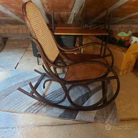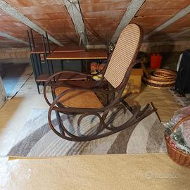 Sedia a dondolo Brown vintage anno 70' La seduta è di paglia di Vienna (fatta tutta sistemare) in perfette condizioni