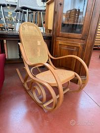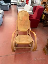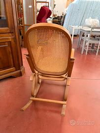 Sedia a dondolo in rattan, conservata in ottime condizioni, visionabile in esposizione. Misure: L.55 x P.110 x H.100