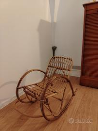 Sedia a dondolo in vimini anni 70