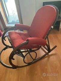 Sedia a dondolo in legno con cuscino. In perfetto stato.