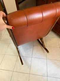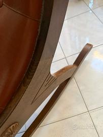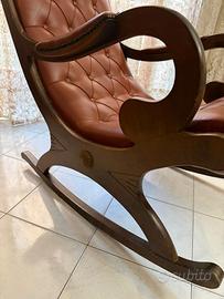 Sedia a dondolo in vera pelle e legno come nuova