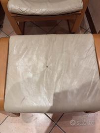 Vendo Sedia a dondolo e poggiapiedi in pelle Ikea POÄNG . Oggetto Usato con qualche imperfezione ma ancora pienamente utilizzabile.