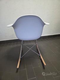 Rocking chair, sedia a dondolo con seduta in plastica montata su una base in acciaio e legno. Stile "Charles and Ray Eames".