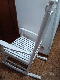 Sedia a dondolo in legno bianca per esterno ed interno. No spedizione.