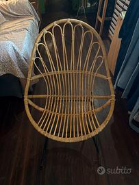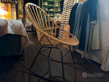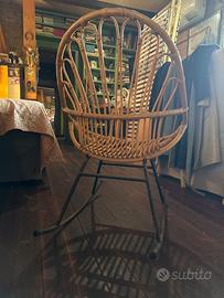 Sedia a dondolo in ferro e vimini in ottimo stato.
