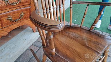sedia a dondolo old america anni 70 in noce ottime condizioni generali....M&P Antichità siamo un negozio specializzato in antiquariato vintage e shabby vendita al dettaglio e all ingrosso scarichi settimanali oltre 500 articoli in negozio, abbiamo una vasta scelta di como comodini tolette armadi letti vetrine vetrinette credenze servanti angoliere librerie tavoli tavolinetti sedie poltrone poltroncine divani lampade lampadari tappeti scrivanie scrittoi secretere ribaltine consolle quadri cornici specchi cassapanche bauli oggettistica varia idee regalo e molto altro ci troviamo a Roma zona Castelverde via Massa San giuliano 26b POSSIBILITÀ DI CONSEGNA E SPEDIZIONE IN TUTTA ITALIA