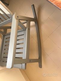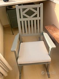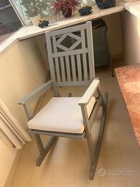 Sedia a dondolo, in legno, colore grigio adatta sia all’interno che all’esterno , compreso il cuscino. Nuova