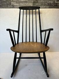 È davvero una bellissima sedia a dondolo scandinava in teak. La sedia è in ottime condizioni, senza alcun danno, e dondola in modo estremamente fluido.